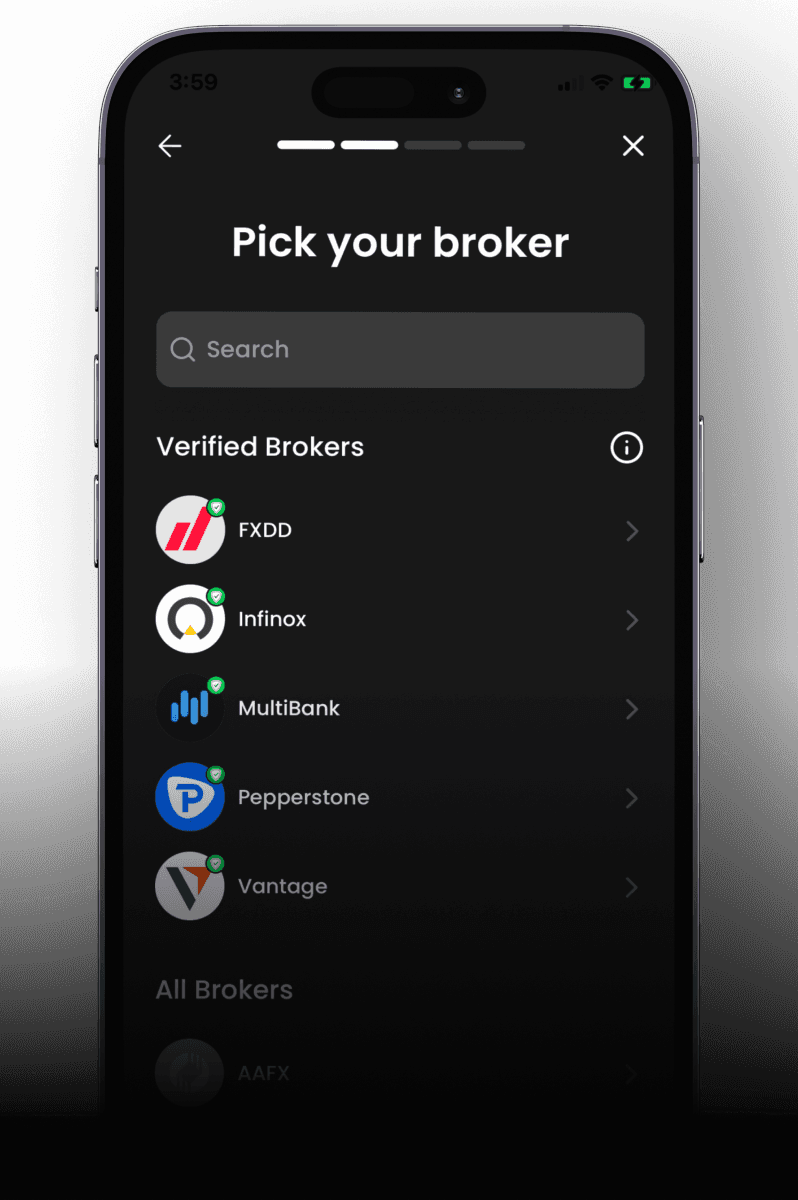 In a few simple steps, connect to your broker of choice.